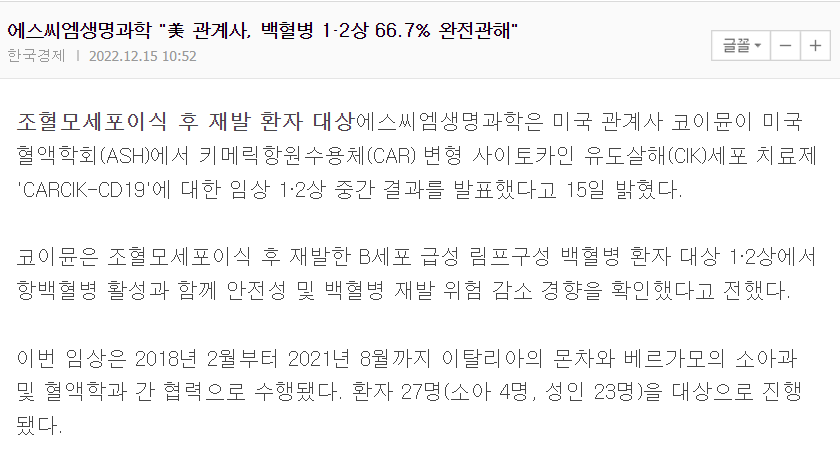 에쓰씨엠생명과학 - 2022.12.7. 발표