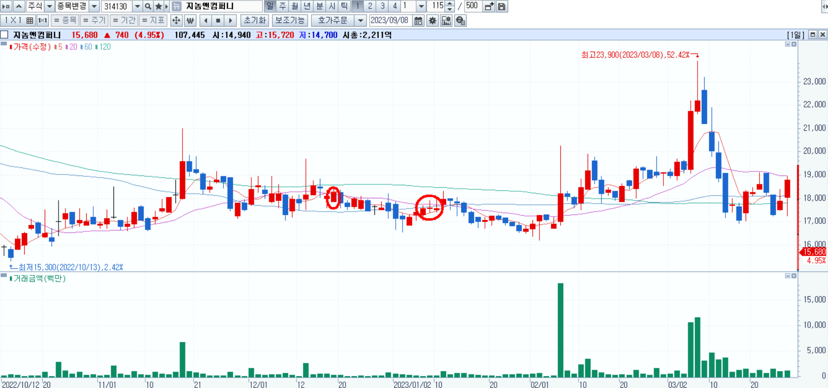 행사 참여 발표날에 매수해서 행사날까지 가지고 있었다면 수익을 얻을 수 있었습니다. 다만, 그 사이에 변동성이 커서 버티기에 어려움이 있었을 것 같습니다.