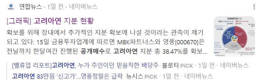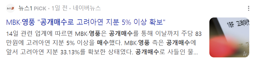 | MBK 고려아연 공개매수 내용, 주가 등 정리 (1) | 2024.09.13 |
