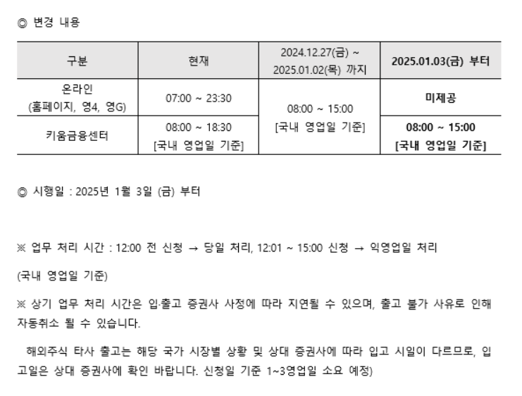2025년 1월 이후로 키움증권에서 해외주식을 옮기는 절차가 전면적으로 변경되었습니다. 기존에는 키움 홈페이지나 HTS를 통해 “타사대체출고” 메뉴를 이용할 수 있었으나, 현재는 해외주식에 한해서 전화 접수만 가능하도록 바뀐 것입니다. 국내주식 옮기기는 예전처럼 온라인으로도 신청할 수 있지만, 해외주식이라면 무조건 키움금융센터(1544-9000)로 전화를 걸어야 합니다.