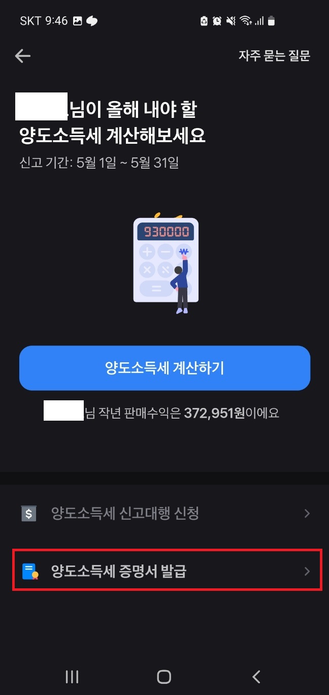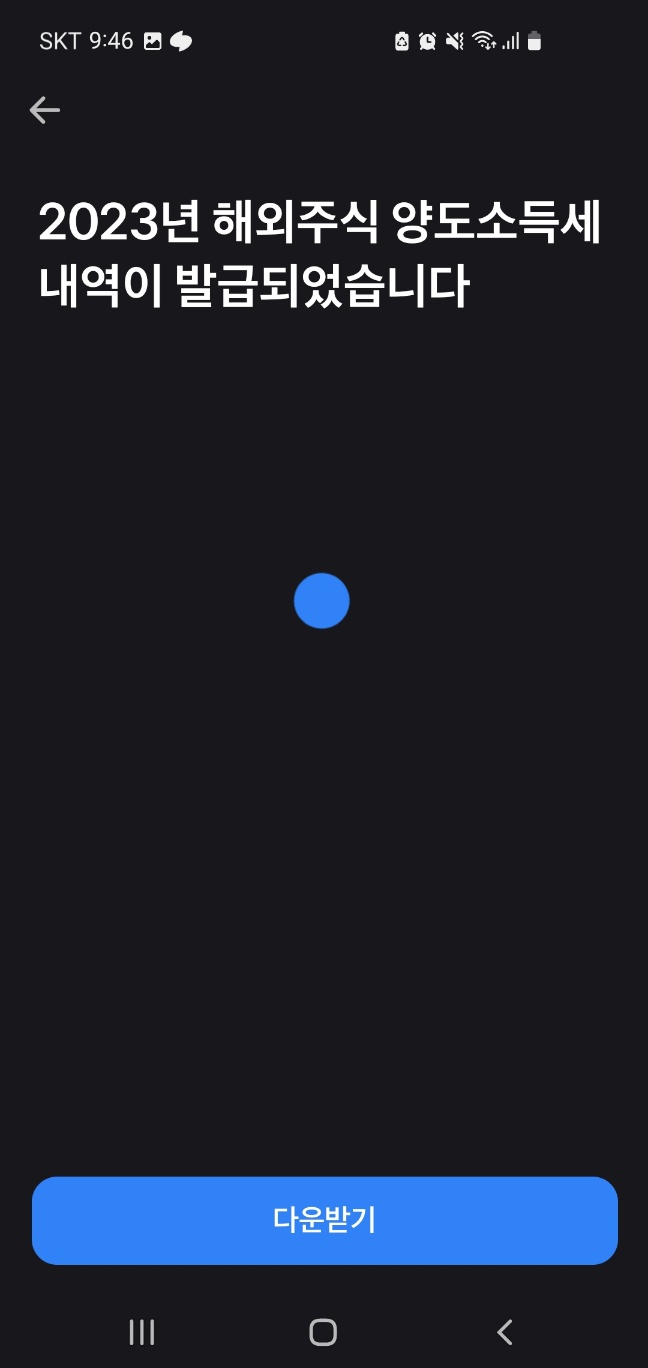 1. 우선 토스증권에서 양도소득이 얼마가 있었는지 증명하는 서류를 받아야합니다. 토스증권에서 '해외주식 양도소득세' 검색 - 양도소득세 증명서 발급을 누르면 내역을 받을 수 있습니다. 전 확인해보니 2023년에 토스증권에서 372,951원을 벌었네요