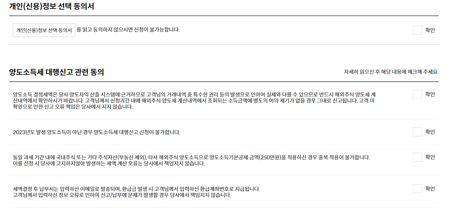 5. 개인정보와 대행신고 관련 동의를 해줍니다.