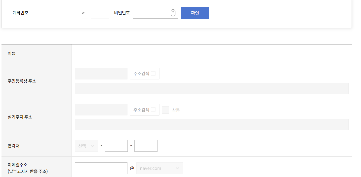 4. 비밀번호 입력 후, 주소지, 고지서를 받을 이메일을 작성하면 됩니다.