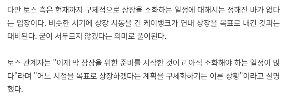 참고로 아직 구체적인 토스 상장일정이 나오진 않았습니다.