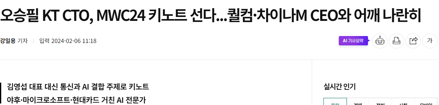 올해 MWC에서 가장 중요한 주제는 CES와 마찬가지로 AI인 것 같습니다. AI를 활용하여 어떻게 수익창출할 것인가에 대한 이야기가 나올 것으로 기대됩니다.