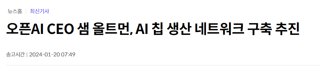 오픈AI의 CEO인 샘 올트먼이 이번 주(1월 22~28일) 중 방한 예정이며, AI 칩 생산 네트워크를 구축한다는 기사가 나왔습니다. 이에 맞춰 AI반도체 분야가 다시 한번 관심을 받을 가능성이 있기 때문에 AI반도체 관련주에 대해 정리해보았습니다.