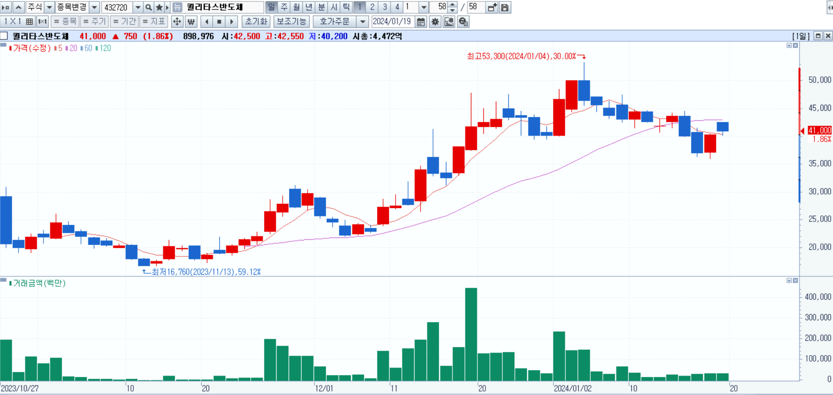 초고속 인터페이스 IP 라이센싱 및 반도체 디자인 서비스를 제공합니다. 1월 27일에 퀄리타스반도체 주식 739,113주(6.78%)가 보호예수 해제가 예정되어 있어 주의가 필요합니다.