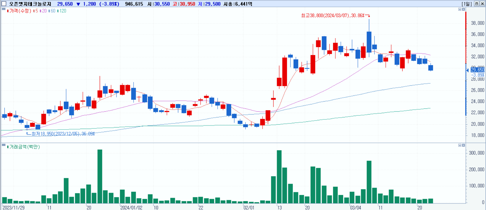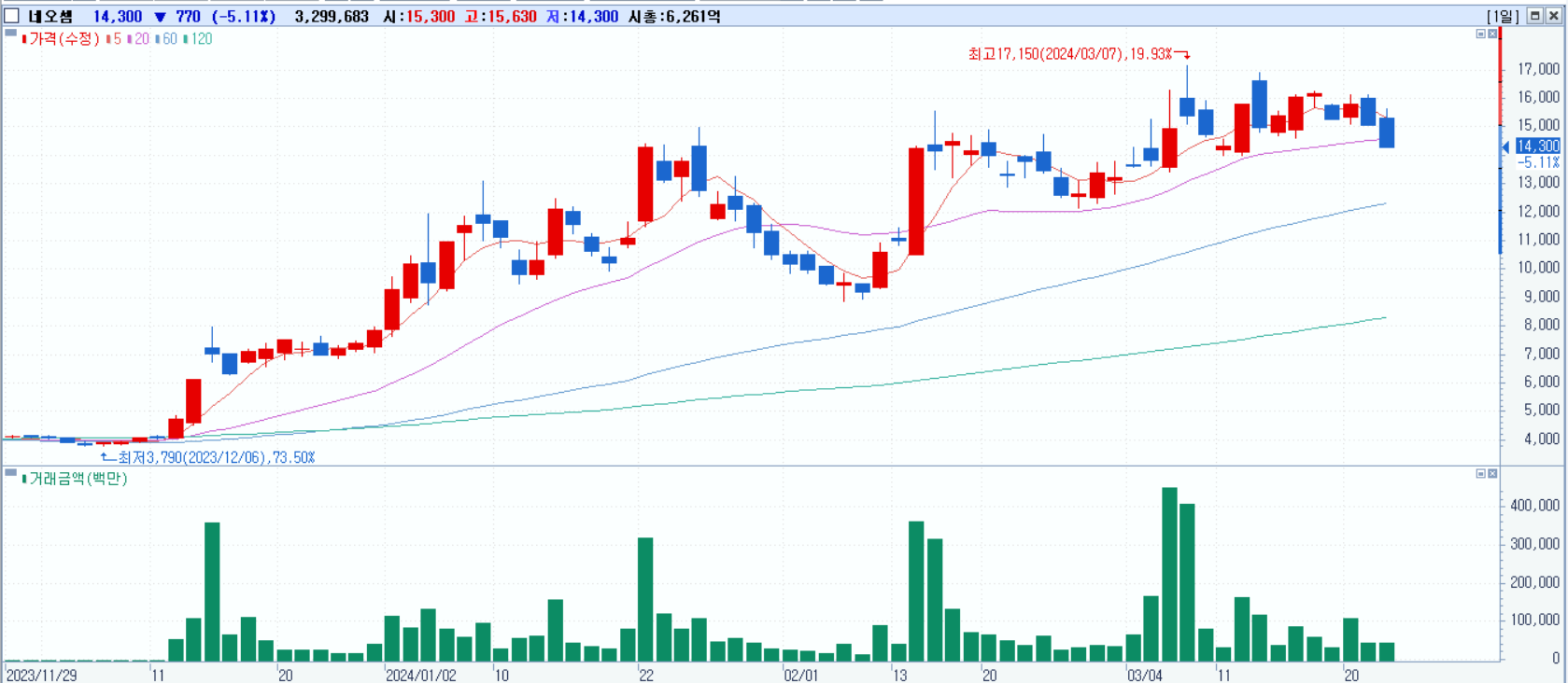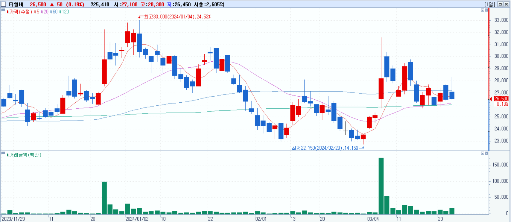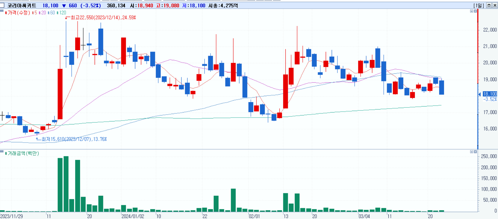 3월 22일 기준 거래금액이 작은 종목부터 큰 종목 순으로 정리하였습니다.