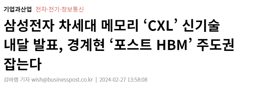 - CXL 관련 이유: CXL 관련 제품 개발을 진행 중이라고 하여 CXL 관련주로 분류됩니다.