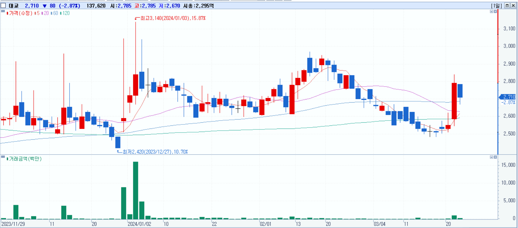 - 사업 개요: 대교와 국순당 자체는 반도체와 직접적인 연관이 없는 기업입니다. 대교는 교육 관련 사업을, 국순당은 전통주 제조 사업을 주력으로 합니다.
